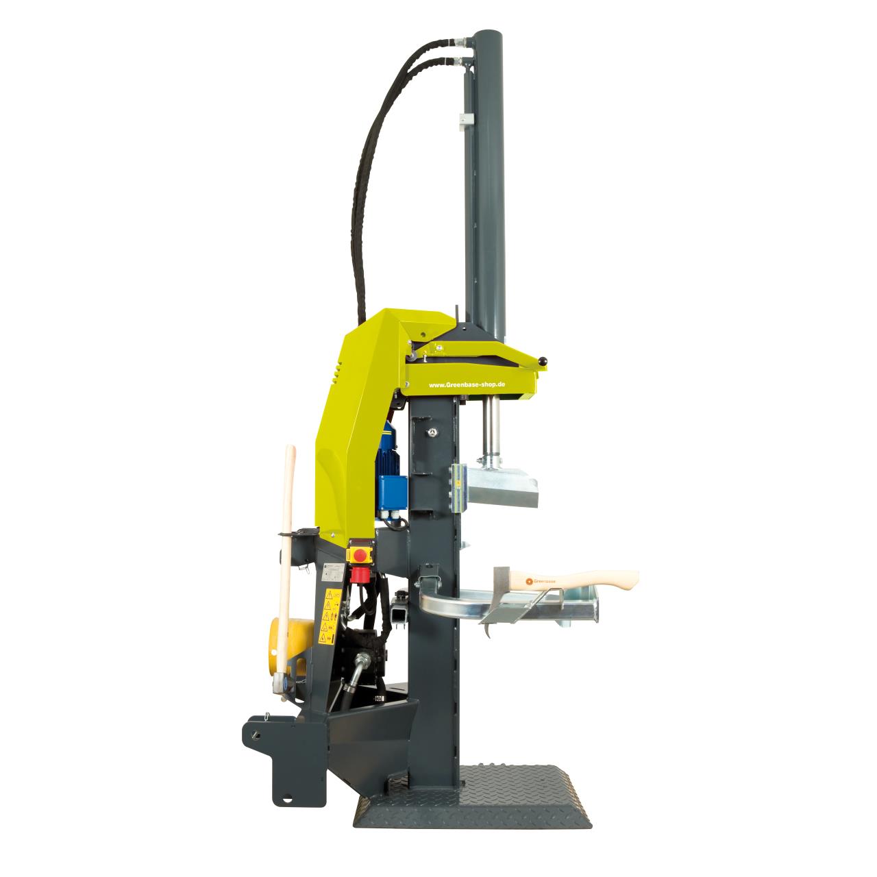 Die neue T-Serie Titanium der Greenbase Langholzspalter mit 14 bis 26 Tonnen Spaltkraft. Schwere Profi-Langholzspalter, robust konstruiert mit schwerer, flacher Fußplatte für sicheren Stand. Die Spaltmesser sind aus Spezialstahl gefertigt. Die Spalter verfügen über eine Dreipunkt-Norm-Aufhängung (Kat. I+ll) für Traktortransport sowie absenkbare Zylinder. Austauschbare, selbstschmierende Kunststoff-Gleitbacken, galvanisierte, verzinkte und pulverbeschichtete Ausführung aller Stahlteile garantieren eine lange Lebensdauer. Die neuen Holzspalter der Titanium T-Serie von Greenbase haben alle die Autospeed Funktion (automatisches Umschalten der zwei Vorlaufgeschwindigkeiten) für effizientes Arbeiten. Der Öltank ist in der Säule mit doppeltem Boden sicher geschützt. Zusätzlich hat der Holzspalter eine Halterung für den Spaltkeil, Sappie und die Spaltaxt. Optional: Spalttisch mit 2 Höhenstufen, Halter für Kanister/breitenverstellbar, Halterung Motorsäge oder Seilwinde mit Funkbedienung. Produktvorteile: Hochleistungs-Hydraulikpumpe, Autospeed für wirtschaftliches Arbeiten, Sicherheits-Zweihandbedienung, Mitte/Oben Hubbegrenzung, mechanischer Stammheber und Holzhaltebügel links. Der Langholzspalter Titanium 17 K ist zum Aufspalten von Baumstücken in Holzscheite gedacht.