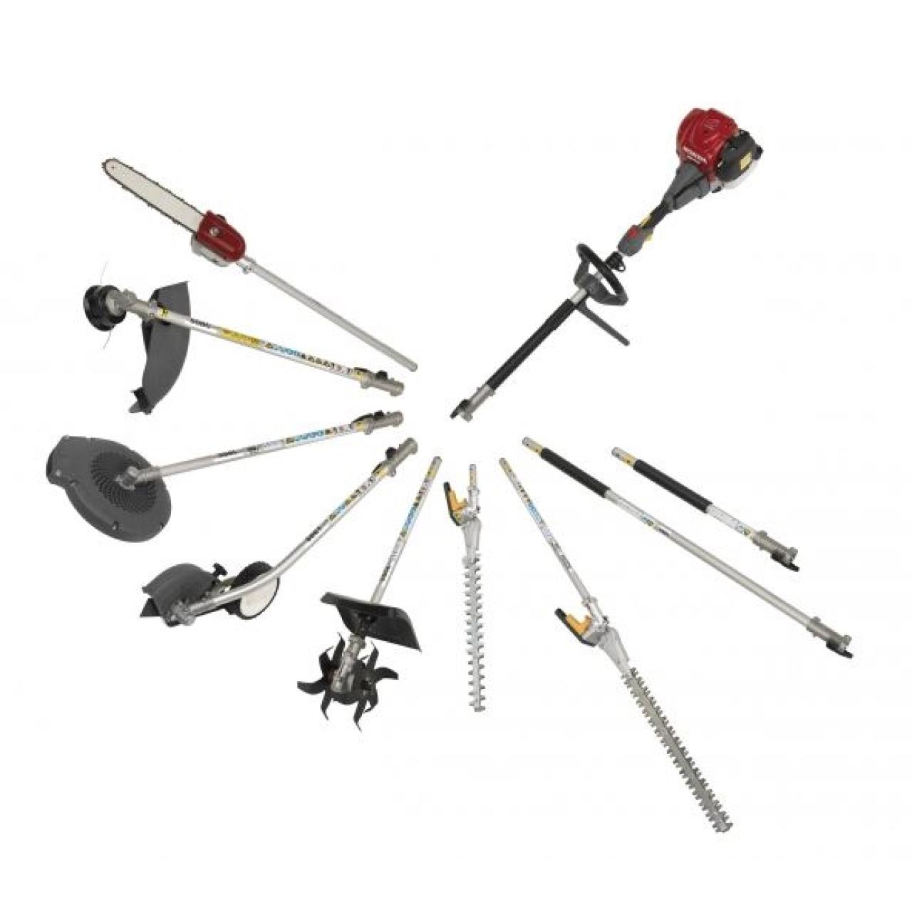 Mit zwei Honda Motoreinheiten unterschiedlicher Stärke. sieben Werkzeugen und zwei Verlängerungen können Sie zahlreiche Arbeiten rund um Haus und Garten mühelos bewältigen.